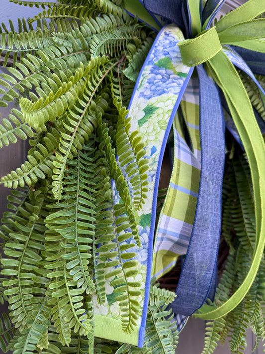 Signature Fern Wreath with Hydrangea Bow – Waterproof Year-Round Greenery Front Door Wreath